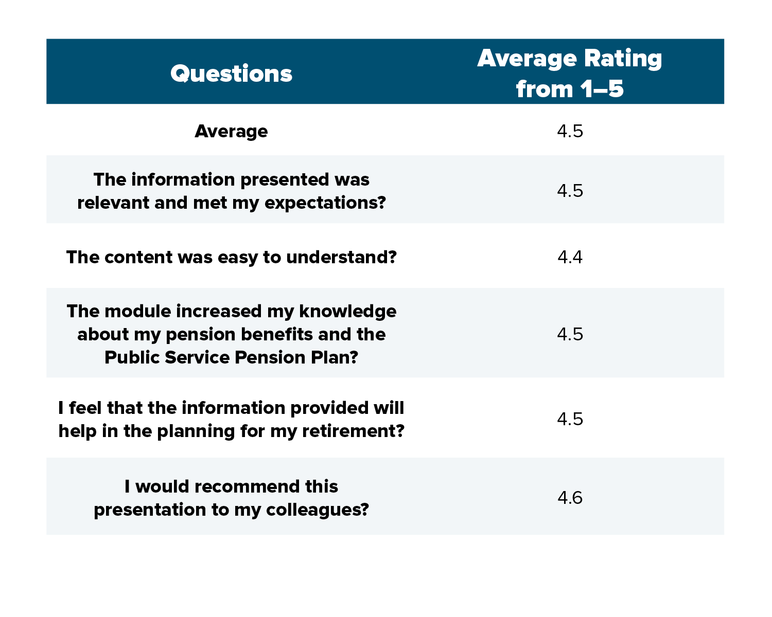 In addition to the Retirement Ready series, Provident10 broadened educational resources for all members with two new documents. Plan at a Glance, which serves as a summary, high-level introduction to the Plan and highlights the “10 things to know about the PSPP” and the Comparing Commuted Value and Deferred Pension information package.