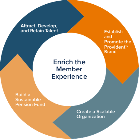 This is a remarkable achievement, something in which we should all take pride. Yet we did not stop there. Provident10 continues to invest resources to enrich the member experience. We also continue to develop risk management solutions and improve internal control frameworks–all while building a pension plan that will prosper well into the future.